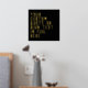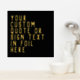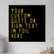 This real gold foil poster art features a text template in modern typography that easily allows you to add your own custom phrase, quote, saying, text, birthday wish, proverb, Bible verse, motivational quote, inspirational quote, funny quotes for kids, mom, dad, grandpa, grandma, boss, colleague, coworker, nurse, graduate, teacher and more. The font style here is in the theme of a bold block font, ideal for a wedding sign, notice or other.
