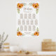 This sunflower and rose floral seating chart will help your guests find their table. It is suitable for a wedding with 13 tables and up to 130 guests.