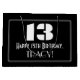 This vintage style 1920s/1930s look inspired birthday gift bag design features a large art deco look inspired number "13", the message "Happy 13th Birthday,", a custom name, and a border pattern consisting of thin lines. The background is coloured black. A gift bag like this might be used when giving a gift or present in honour of somebody’s 13th birthday. [~Z0000495]
