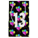 Colourful 13th birthday balloon bouquets with party confetti on black background.