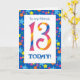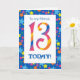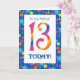 A bright and colourful 13th Birthday Card for a Friend, with striped numbers and a starry border, from a digital design by Judy Adamson. You can change the inside message if you wish.