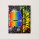 This joyful and cheerful birthday themed jigsaw puzzle design features a large number “13” having a multicolored rainbow spectrum inspired gradient pattern. It also features the message “HAPPY 13th BIRTHDAY,”, and a customisable recipient name. The background has a bold, multicolored pattern that resembles bursting celebratory fireworks. An exciting, editable birthday puzzle like this might be given to celebrate somebody’s thirteenth birthday. [~Z0000605]