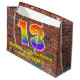 This vibrant and colourful birthday themed gift-bag design, inspired by urban art and graffiti, features a large number "13" having a rainbow spectrum gradient inspired pattern. It also features the message "Happy 13th Birthday,", and an editable name. The background features a brick wall style pattern. A fun birthday themed giftbag like this might be used when giving a gift or present in celebration of somebody’s thirteenth birthday. [~Z0000522]