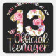 13th Birthday Girls 13 Years Teen Teenager Square Sticker