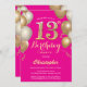 13th Birthday Hot Pink and Gold Balloons Confetti Invitation