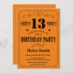 13th Birthday Invitation Black and Orange