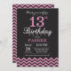 13th Birthday Invitation with Black and Pink Chevron. Chalkboard. Kids Birthday. Boy or Girl Bday Invite. For further customisation, please click the "Customise it" button and use our design tool to modify this template.