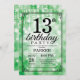 13th Birthday Invitation Green Glitter