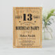 13th Birthday Invitation. Typography. Cheers to 13 years. Rustic Wood Background. Kids Birthday. Male Men or Women Birthday. Kids Boy or Girl Lady Teen Teenage Bday Invite. 13th 15th 16th 18th 20th 21st 30th 40th 50th 60th 70th 80th 90th 100th. Any Age. For further customisation, please click the "Customise it" button and use our design tool to modify this template.