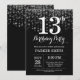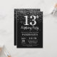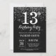 13th Birthday Invitation Silver Glitter