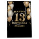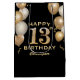 13th Birthday Party Black and Gold Balloons Medium Gift Bag