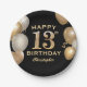 13th Birthday Party Black and Gold Balloons Paper Plate