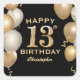 13th Birthday Party Black and Gold Balloons Square Sticker