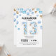 13th Birthday Party, Blue and Gold Balloon Boy Invitation