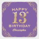 13th Birthday Party Purple and Gold Glitter Frame Square Sticker