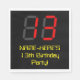 This silly and fun birthday paper napkin design features a large number "13" with a red seven segment digital display style appearance, along with a personalised name and the message "13th Birthday Party!" in geeky computing-inspired yellow text, on a black coloured background. Fun, customised birthday themed paper napkins like this might be used at somebody’s 13th birthday party. [~Z0000388]