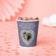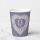 Personalise these white lace effect heart wedding anniversary party paper cups with your own 10th wedding anniversary couples' names, a photo, date and years of marriage. Other matching items are available. Lace heart effect graphic art and design by Sarah Trett for www.mylittleeden.com and www.mylittleedenweddings.com