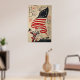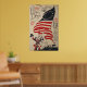 A World War I poster showing a man raising the American flag, with a minuteman cheering and an eagle flying above.