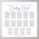 Make your wedding reception beautiful with this seating chart. Designed as a part of our Blue & Grey Elegant Wedding Suite, it features a simple yet elegant design with light blue & Grey text on a white background with a silver faux foil floral border.This chart shows table assignments so your guests will have an easy time finding the right table.