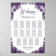 Help your guests find their table with this purple floral seating chart. It is suitable for a wedding with 14 tables and up to 140 guests.