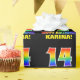 This colourful, fun, and cheerful birthday themed wrapping paper design features a large number "14" and the message "HAPPY BIRTHDAY,", both coloured with a rainbow spectrum gradient inspired pattern, along with a bold yellow personalised recipient name. The background is coloured black. Fun birthday themed wrapping paper like this may be used to wrap a gift or present being given to somebody who is celebrating their fourteenth birthday. [~Z0000475]