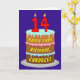 14th Birthday: Fun Cake and Candles + Custom Name Card