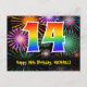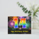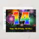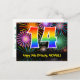 14th Birthday – Fun Fireworks Pattern + Rainbow 14 Postcard