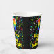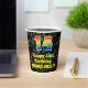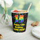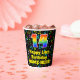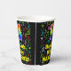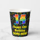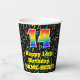 This joyful and fun music-themed birthday paper cup design features a large number “14” with a rainbow spectrum gradient inspired pattern, along with the message “Happy 14th Birthday,”, and an editable name. The background features a multicolored pattern of various music notes and symbols having a variety of sizes and colours. Vibrant, colourful paper cups like this might be fun to use at a birthday party being held to celebrate somebody’s 14th birthday. [~Z0000541]