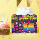 This joyful and happy birthday-themed wrapping paper design features a large number “14” having a rainbow spectrum gradient inspired pattern. It also features the message “Happy 14th Birthday,”, and a personalised name. The background features a pattern of purple, pink, and red heart shapes of various sizes. Personalised birthday themed wrapping paper like this might be used when giving a gift or present in celebration of somebody’s 14th birthday. [~Z0000549]