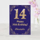 14th Birthday Navy Blue and Gold Glitter Frame Card