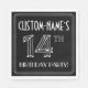 This elegant 1920s/1930s era inspired art deco look birthday themed paper napkin design has a customisable name, plus the message “14TH BIRTHDAY PARTY!”. The number “14TH” has a fancy geometric lined look. Birthday themed paper napkins like these might be used at a party celebrating somebody’s fourteenth birthday, or some other 14th event. [~Z0000659]