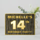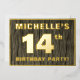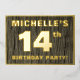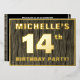 The front of this bold fourteenth birthday celebration foil invitation card features a personalised name, a large number “14th”, the message “BIRTHDAY PARTY!”, and a border, all in foil. The background of the front features a rustic, yet elegant, faux wood grain look inspired pattern. The back features personalised details about the event, such as the date, time, venue, and any other information that may be useful. Customised invitations like these might be used to invite attendees/guests to a birthday gathering/party being held in celebration of somebody’s 14th birthday. [~Z0000598]