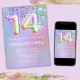 14th birthday party invitation purple pink glitter drips 14th birthday party invitation for a 14 year old girl with modern script writing and fun foil balloons.