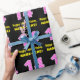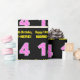 This fun and joyful birthday themed wrapping paper design features a large number "14" having a stripes pattern containing heart shapes coloured light pink and dark pink. It also features the birthday greeting message "Happy 14th Birthday,", and a personalised recipient name. Birthday themed wrapping paper like this might be used when giving a gift or present in celebration of somebody’s fourteenth birthday. [~Z0000435]