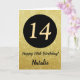 14th Happy Birthday Black and Gold Glitter Card with personalised name. For further customisation, please click the "Customise it" button and use our design tool to modify this template.