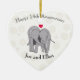 This unusual heart keepsake has been designed for a couples fourteenth wedding anniversary, traditionally ivory. It features a background of ivory net with ivory flowers, two cute cartoon elephants, and editable text. A lovely gift.