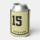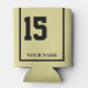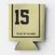 Enjoy a day at the horse races with your own customised can cooler with a racing saddle blanket design. Just like the horses wear in a derby, this saddle cloth can cooler features a number and is personalised with your name. A great party favour for a viewing party that your guests can enjoy Khaki background with black accents. Traditional style for horse number 15.