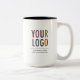 Personalise our 15 oz ceramic mug with your business logo and custom text. The larger 15 ounce size is convenient for employees because they don't need to refill it as often as the standard size mug. Custom logo mugs make a long lasting impression as swag and office gifts. Available in 15 oz (15 ounce) in classic white, two-tone (with inside colour), combo (with inside colour and handle colour), and as a morphing mug. No minimum order quantity and no setup fee.