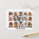 Use 15 photos to create a personal photo collage postcard. This modern, clean layout includes a script text block to add a family name or other information. The background colour and fonts can be changed in the customise area.