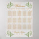 The wedding seating chart has 15 tables. In all four corners, there are willow branches with green leaves.