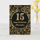 15th Birthday Black and Gold Floral Pattern Card
