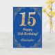 15th Birthday Blue and Gold Glitter Frame Card