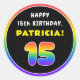 15th Birthday: Colourful Rainbow # 15, Custom Name Classic Round Sticker