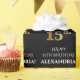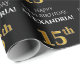 15th Birthday: Elegant, Black, Faux Gold Look Wrapping Paper