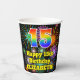 15th Birthday: Fun Fireworks Pattern + Rainbow 15 Paper Cups