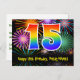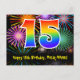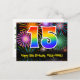 15th Birthday – Fun Fireworks Pattern + Rainbow 15 Postcard