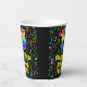 This exciting and cheerful music themed birthday paper cup design features a large number “15” with a rainbow spectrum gradient inspired pattern, along with the message “Happy 15th Birthday,”, and a customisable name. The background features an exciting and colourful pattern having music notes and symbols of various sizes and colours. Vibrant, colourful paper cups like this might be fun to have at a birthday celebration being held in celebration of somebody’s 15th birthday. [~Z0000541]