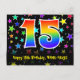 15th Birthday: Fun Stars Pattern, Rainbow 15, Name Postcard