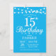 15th Birthday Invitation with String Lights. Blue Background. Kids Birthday. Boy or Girl Lady Elegant bday Invite. 13th 15th 16th 18th 20th 21st 30th 40th 50th 60th 70th 80th 90th 100th, Any age. For further customisation, please click the "Customise it" button and use our design tool to modify this template.