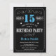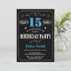 15th Birthday Invitation Blue and Black Chalkboard